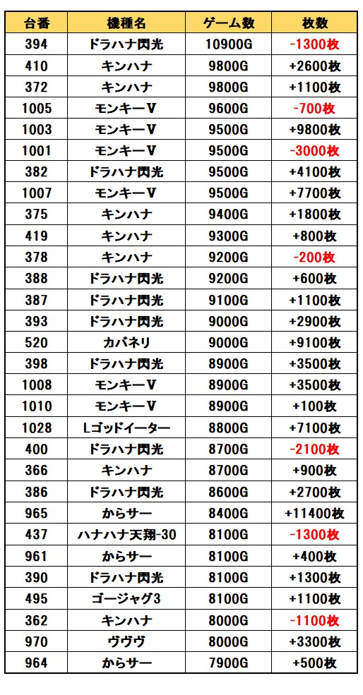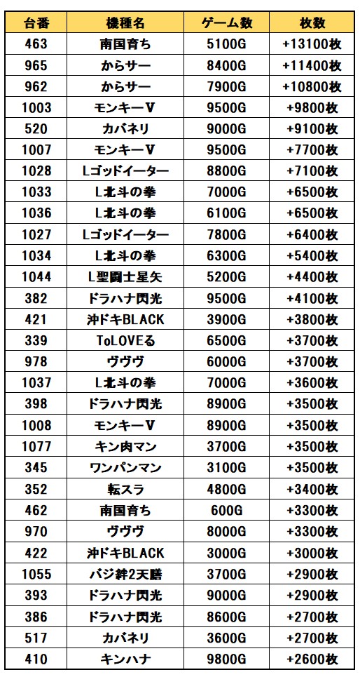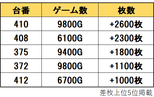 【差枚ランキングTOP30】