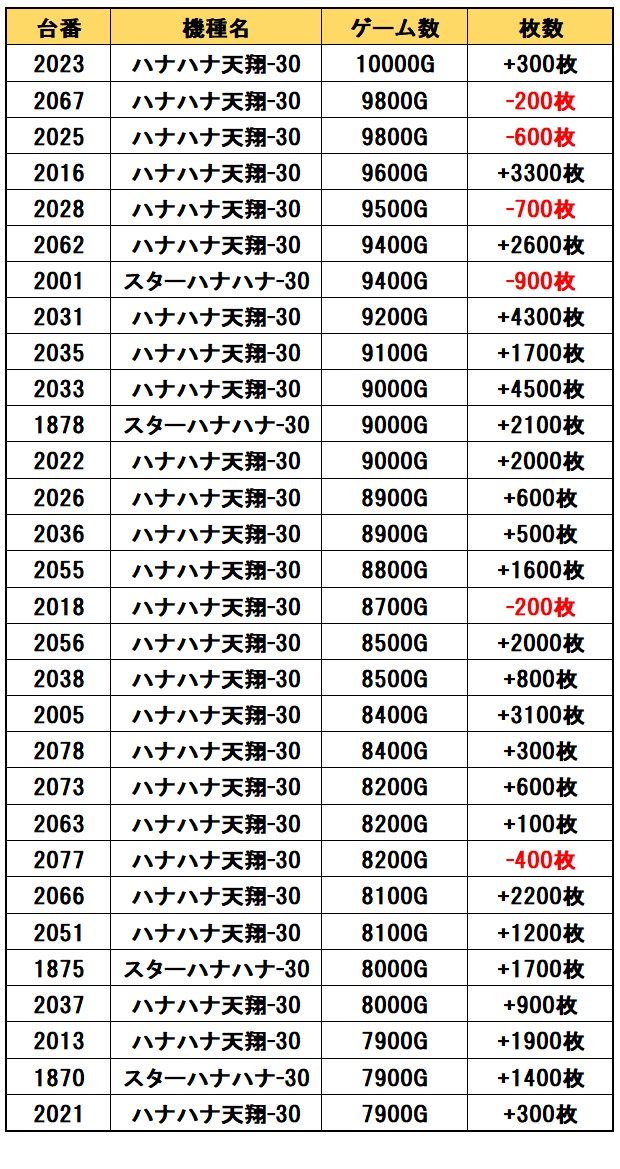 ハナ天翔が68台平均7200Gで出率も十分、スタハナ&キンハナも平均6000G超えと、店内チカリで圧倒的な賑わいを見せたことかと思います!