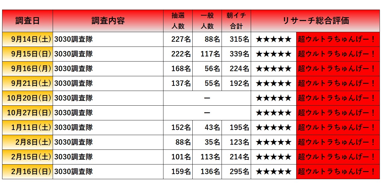 言葉少なに早速総評させて頂きますが、前回以上の稼働率で言葉不要のシンプルに非常に内容の濃い結果となりました!!